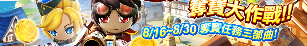 - 活動期間之指定時段內,進行奪寶模式的比賽,比賽結束時將額外獲得50%的金幣加成,快點號招好友們一起來奪寶拿金幣喔!